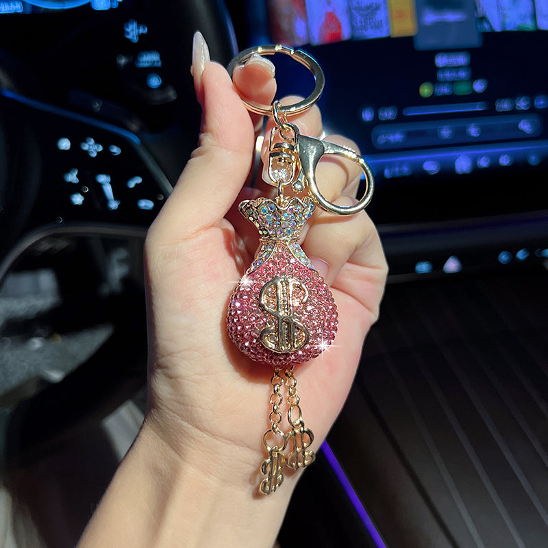 Creative Crystal Money Bag Keychain | Exquisite Diamond-Accented Metal Pendant for Car & Bags