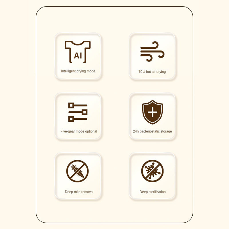 Sanftes Sterilisationstrocknen bei 70°C, speziell für Kleidung