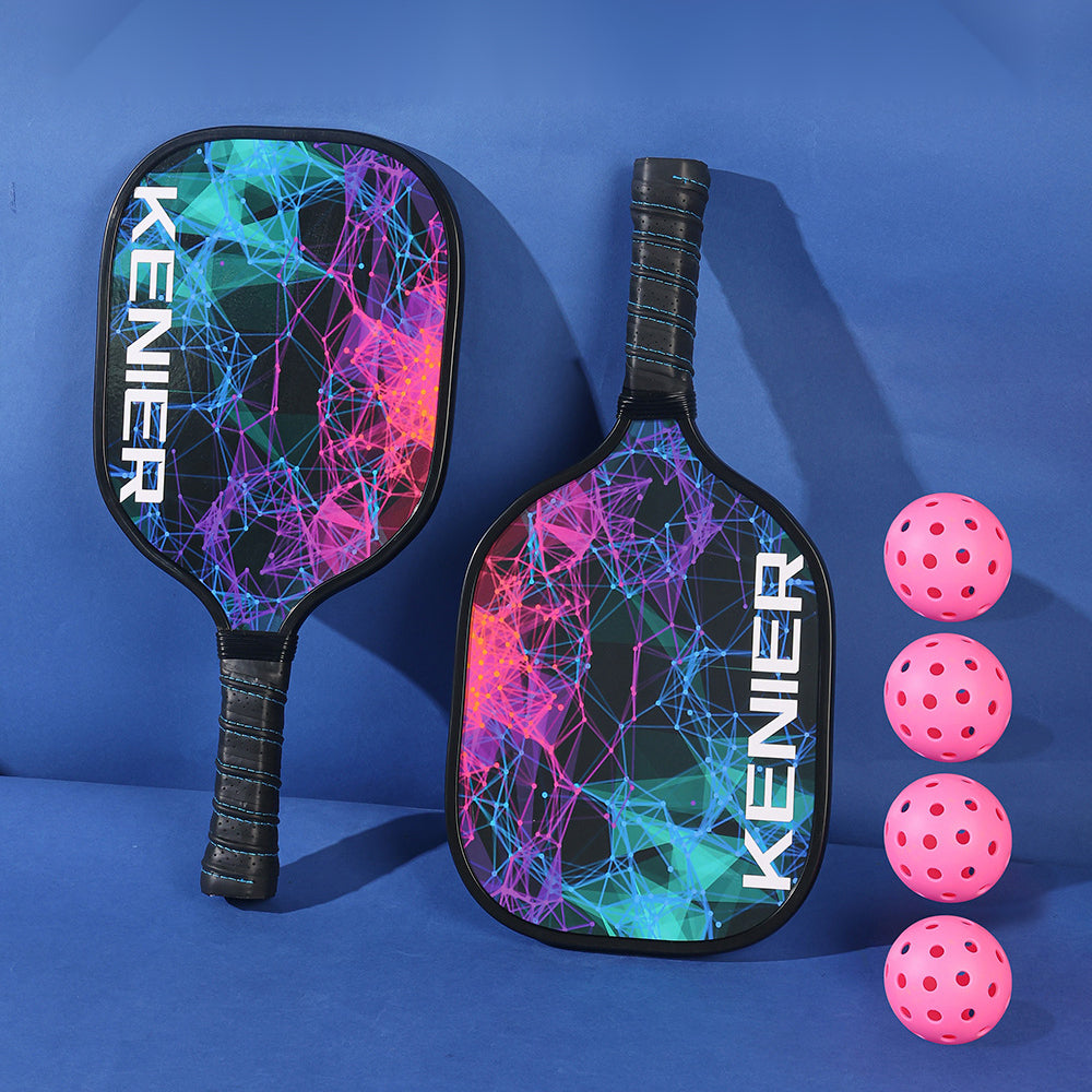 When first seeing this Kener pickleball paddle and ball set, the colorful crack - pattern design on the paddles is very eye - catching. The interweaving of blue, purple, and pink has a strong visual impact. Paired with the cute pink pickleballs, the overall look is stylish and full of personality.