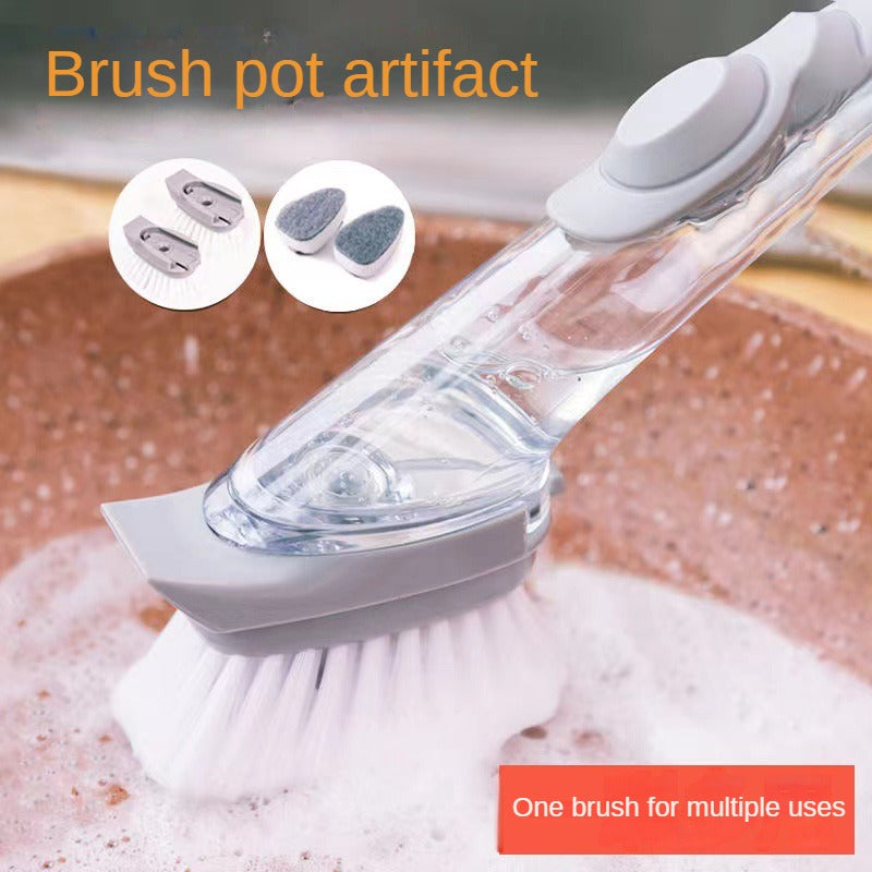 New Brush Pot Long Handle Cleaning Brush Kitchen Dishwashing Brush Dishwashing Sponge with Liquid Washing Brush