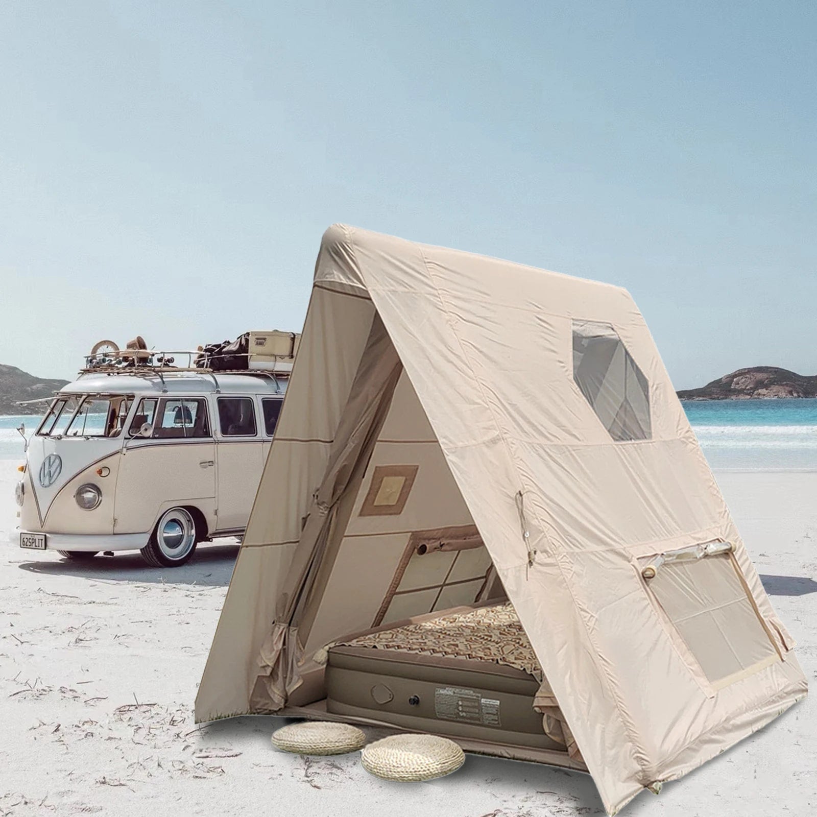 Found this inflatable tent by chance, fell in love with it after one use! Soft and comfortable material, lying inside feels like sleeping at home. Good ventilation, not stuffy even camping in summer, can open the skylight to see stars at night. Easy to set up and store, has become my essential camping gear!