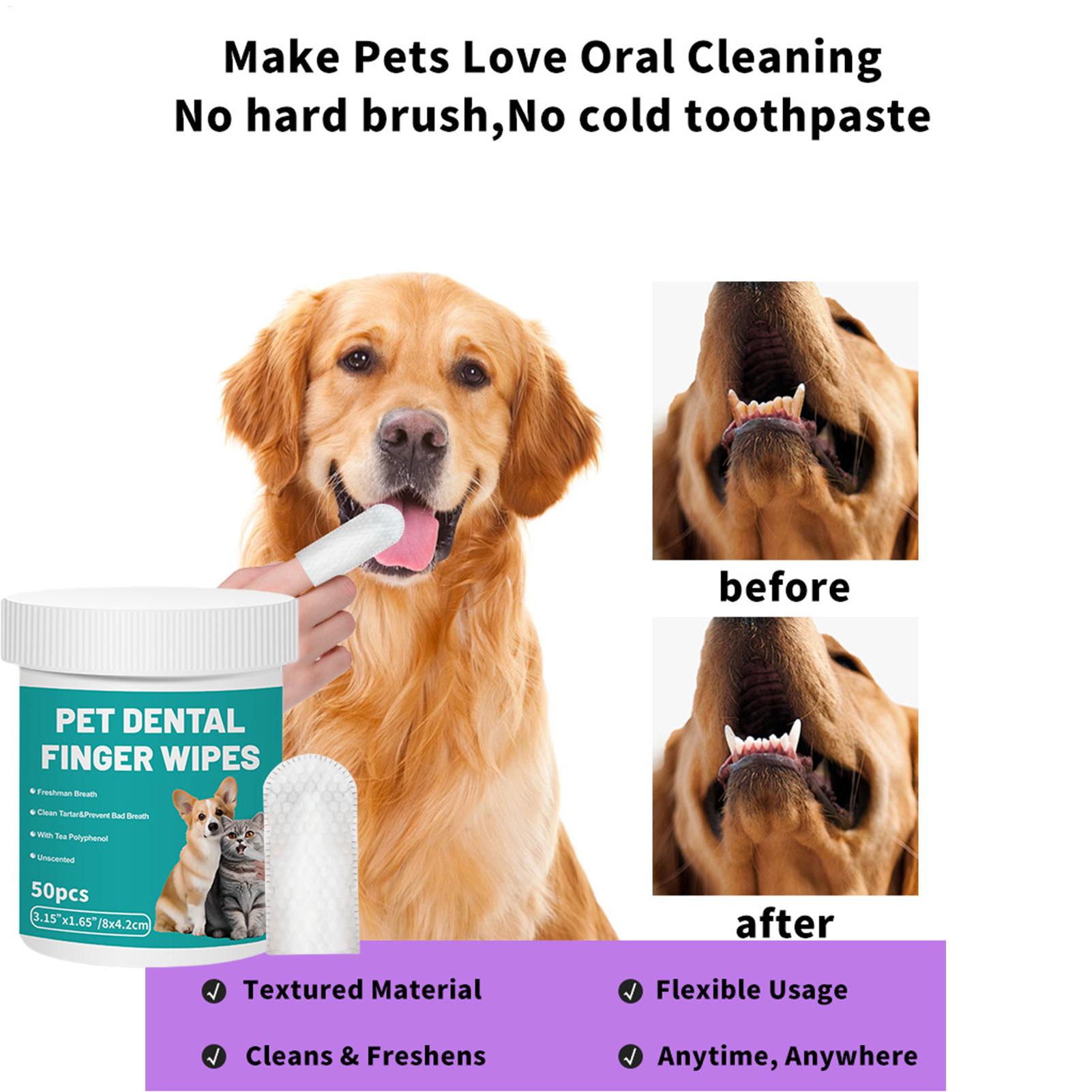 50Pcs Pet Teeth Cleaning Wipes | Dental Finger Wipes | Disposable Gentle Teeth Cleaning Pads | Bad Breath Remover | For Dogs And Cats