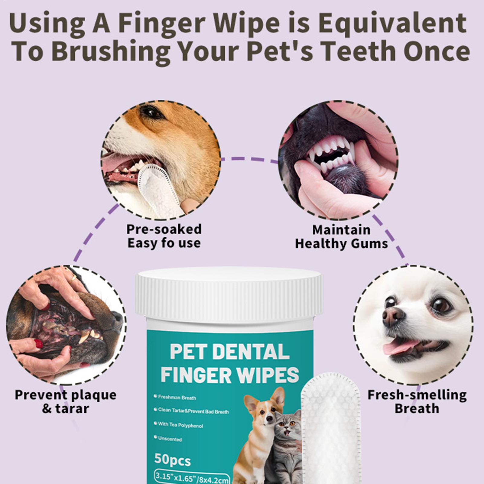 1. **Useful and Practical**: Keep Your Pet's Teeth Clean With Ease Using Our Dog Teeth Finger Wipes. Designed To Effectively Cleanse Teeth and Easily Wipe Away Scums on pets ' teeth, It Ensures a Comfortable Brushing Experience 🐾