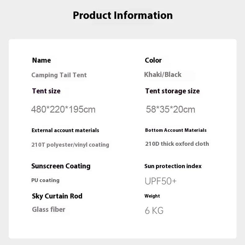This tent is perfect for outdoor camping! The space design is very practical, and when used with the awning, it’s great for sunshade and rain protection. The tent material is sturdy, and it’s stable after setup. Camping on the grass feels very comfortable. Whether for relaxation or gathering with friends, it can bring a great experience. Highly recommended!