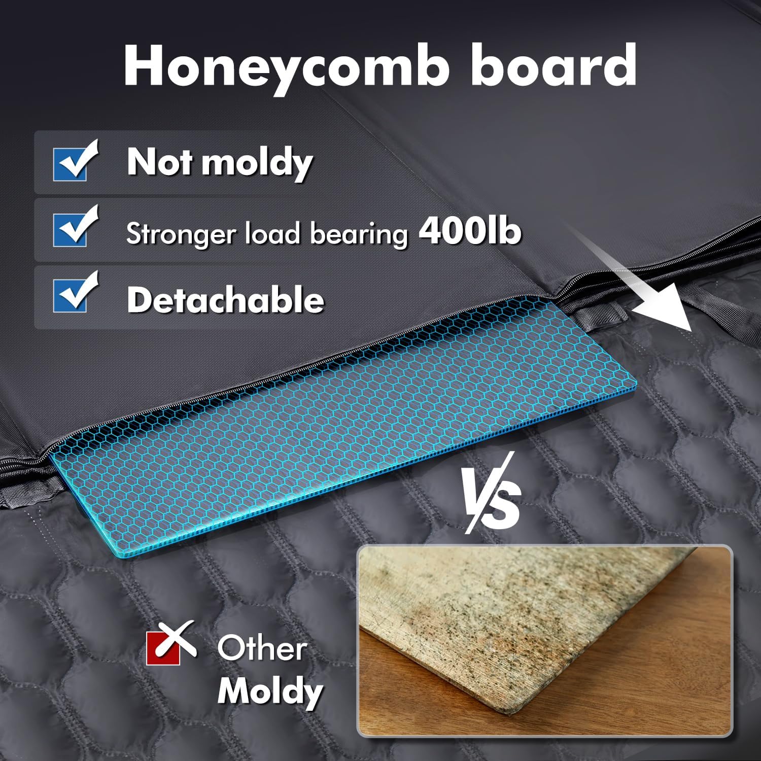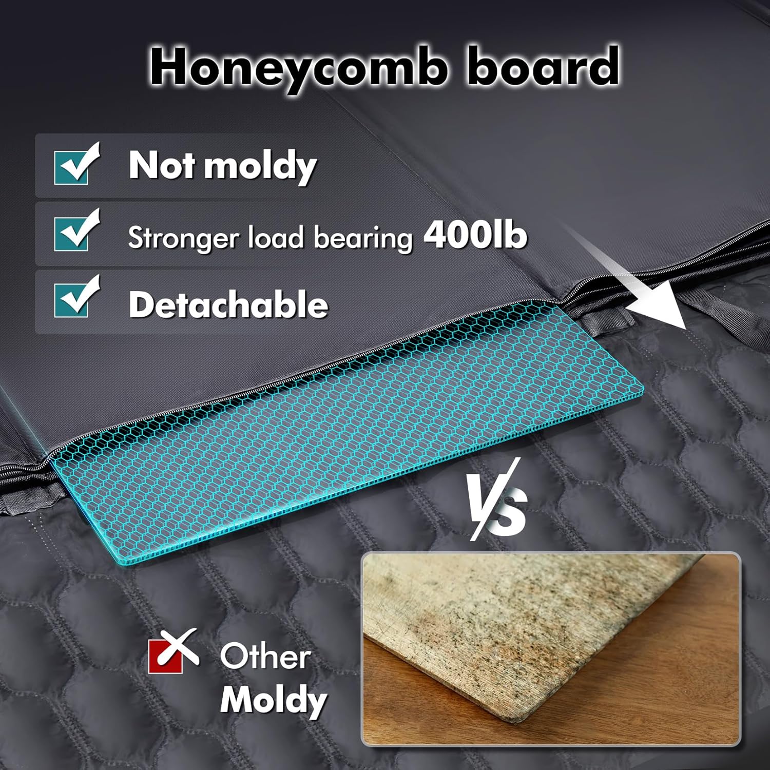 Upgraded Removable Honeycomb Panel Platform Supports 400 Lbs: Our back seat Dog Seat Cover features an inner layer of 3 thick Honeycomb Panels that can support all breeds of dogs without collapsing, supporting up to 400 Lbs. Honeycomb Panels are stronger than wooden planks. Removable design for easy machine cleaning of the Dog Car Seat Cover.
